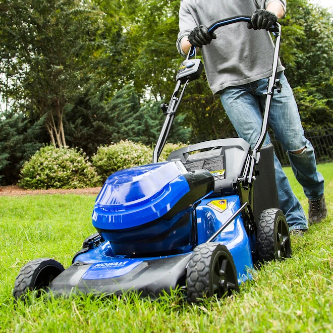 This Kobalt 40 V cordless mower is equipped with a brushless motor offering excellent efficiency and greater runtime. This 3-in-1 mower offers rear bagging, mulching or side discharge capabilities. The cutting height adjustment system is controlled by a single lever that gives you the choice of 7 different cutting positions, which make your mower ideal for all types of yards. This CSA-certified product comes with a 5-year limited warranty.