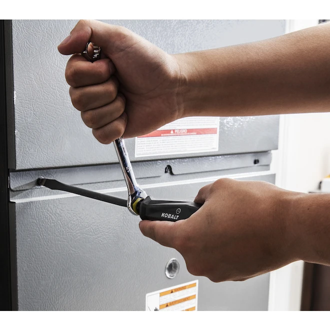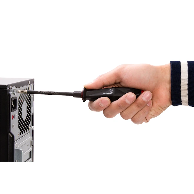This set of 6 screwdrivers with advanced ergonomic handles have multiple zones of angled facets and indentations that provide secure surfaces for your fingers without the harsh edges digging into the palm of your hand when grasping full-handed. When more torque is needed to free a particularly stubborn or rusted fastener, a hex bolster on the shaft base allows a wrench to be used to provide that extra power needed to break them loose. Each screwdriver tip is diamond-coated, expanding by three the gripping power and greatly reduces the risk of cam-out and rounding of your fastener. Bright, colour-coded sections on both ends of each handle allow for easy identification of flat blade and Phillips tip styles. Additional style icons and moulded size callouts in the handle and laser-etched into the tool shaft also help to quickly identify your screwdrivers. With Kobalt Performance series hand tools, you will experience professional performance blended with personal design and comfort.