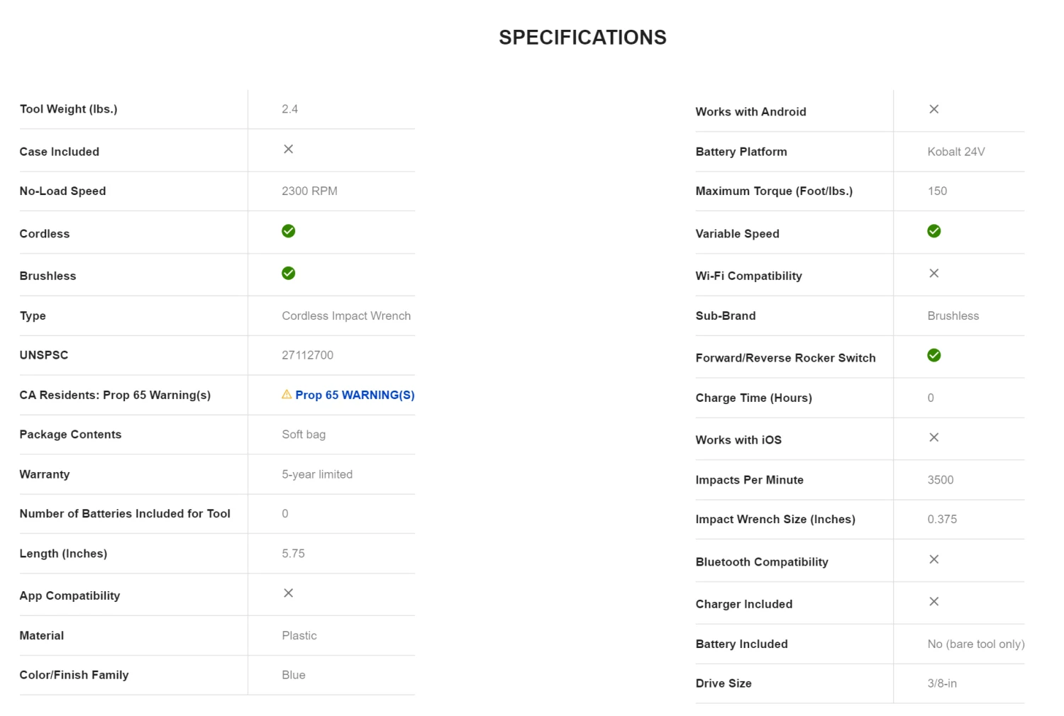 - See reviews of Kobalt KIW 3824B-03 on Youtube