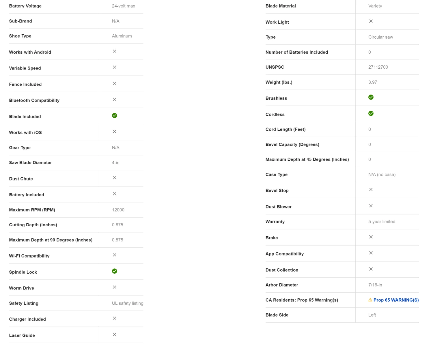 - Compact blade and a cutting depth of 7/8-in