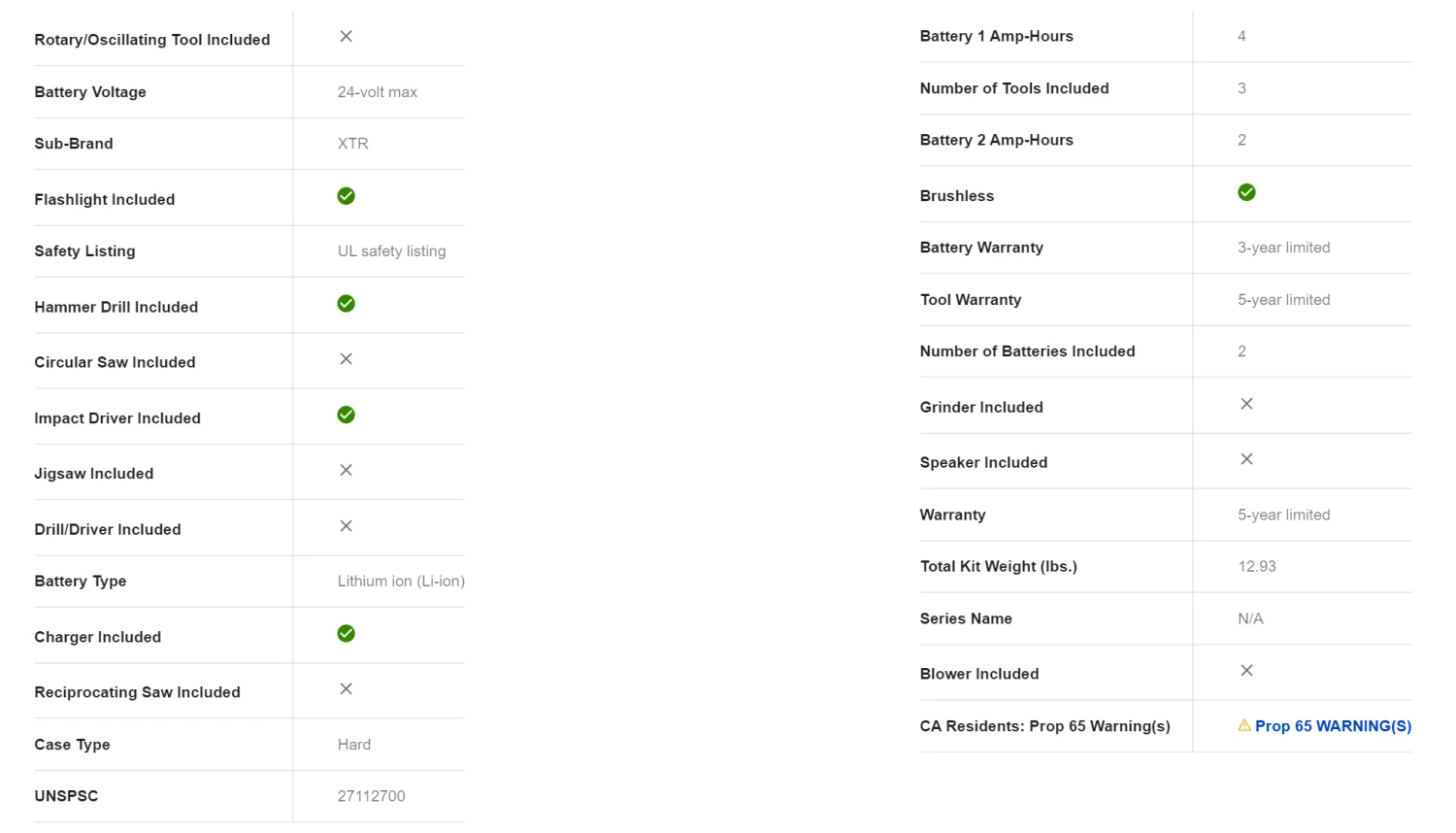 - Also included: 2.0Ah battery, 4.0Ah Ultimate Output battery, charger, 2 belt clips, double-sided bit (PH2 and SL6), PH2 bit, auxiliary handle and case